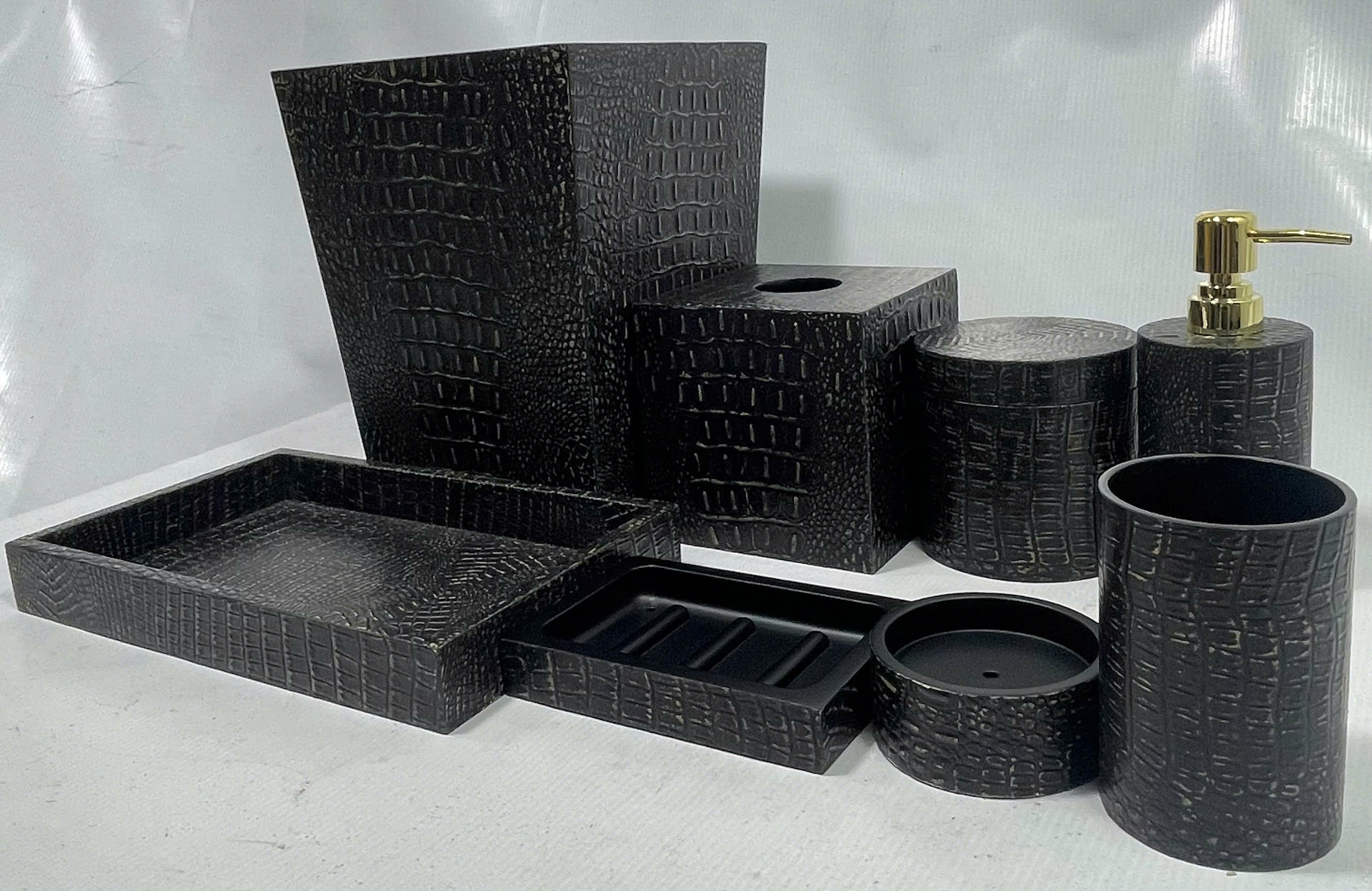 Crocodile-Embossed Faux Leather Bathroom Set – Luxury in Every Detail